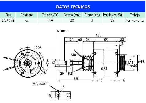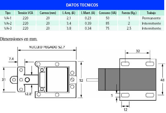 Los electroimanes de accionamiento (tragantes) son aquellos en los cuales su armadura es absorbida hacia el interior de la bobina debido a las fuerzas electromagnéticas generadas, siendo el retorno a su posición inicial por acciones externas. Según cual sea el sentido de transmisión de la fuerza a la armadura se distinguen en modelos de "Tiro" o "Empuje". Estos dispositivos deben funcionar por lo menos a "2/3" de su fuerza magnética para evitar desgastes prematuros de las caras polares debido a impactos fuertes repetidos, debiendo prestarse especial atención a que dichas caras (núcleo y armadura) queden en contacto al finalizar la maniobra de activación. Durante el montaje deberá observarse cuidadosamente que la dirección de la fuerza de la carga a accionar coincida con el eje de movimiento de la armadura recomendándose que la misma no se fije rígidamente sino en forma articulada, por ejemplo con abrazaderas o similares. Pueden utilizarse para diferentes clases de servicio permanente o intermitente. En el primer caso la duración de la conexión es tan larga que se alcanza prácticamente la temperatura de régimen. En servicio intermitente se suceden períodos de conexión y pausas sin corriente por lo cual dentro de los valores admisibles de intermitencia para un electroimán, los tiempos de ciclo de conexión pueden distribuirse de la siguiente manera: Tiempo de Conexión: 40% del ciclo. Tiempo de Desconexión: 60% del ciclo. Para esta determinación se utiliza en general un valor preferente de la Duración del ciclo de maniobra de 5 minutos de acuerdo a la norma VDE 0580. Los electroimanes de accionamiento se conectarán a corriente alterna o continua según los casos y modelos. La máxima variación permitida es +5% -10% de la tensión nominal. |